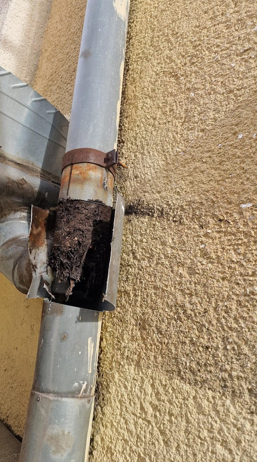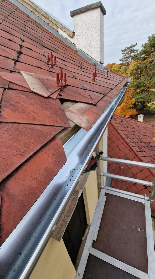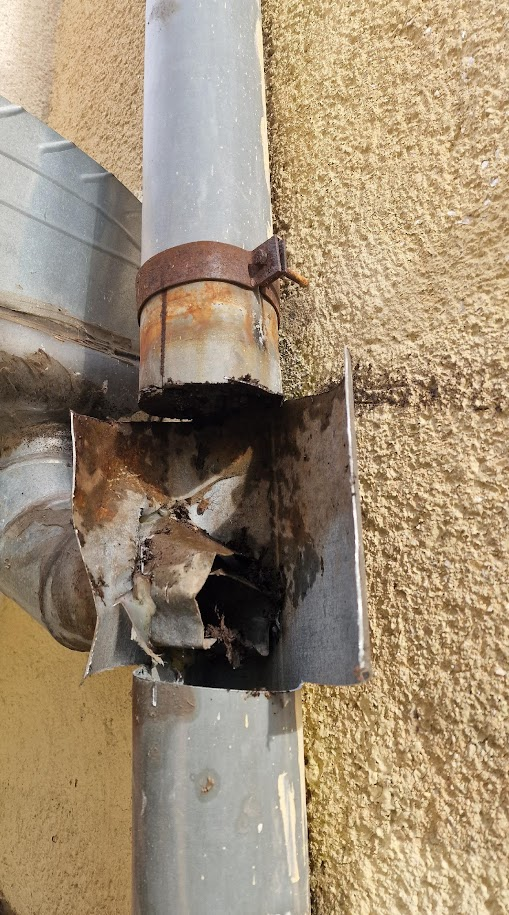 Az elérhetetlen és ezért nem tisztítható ereszek eltömődtek: