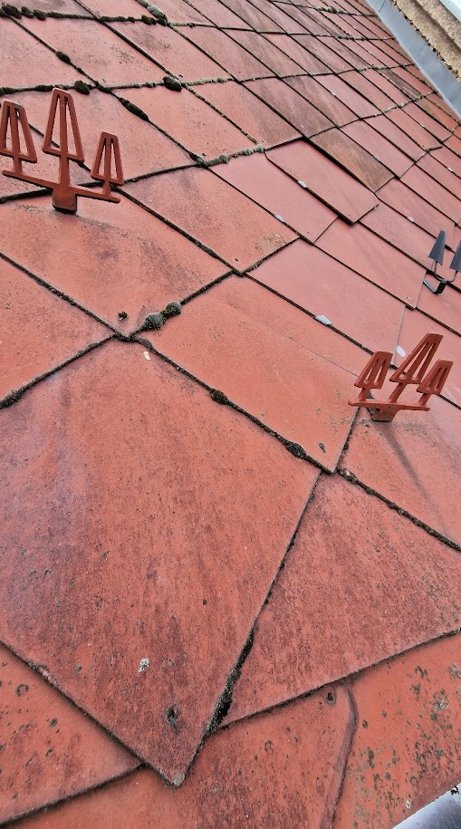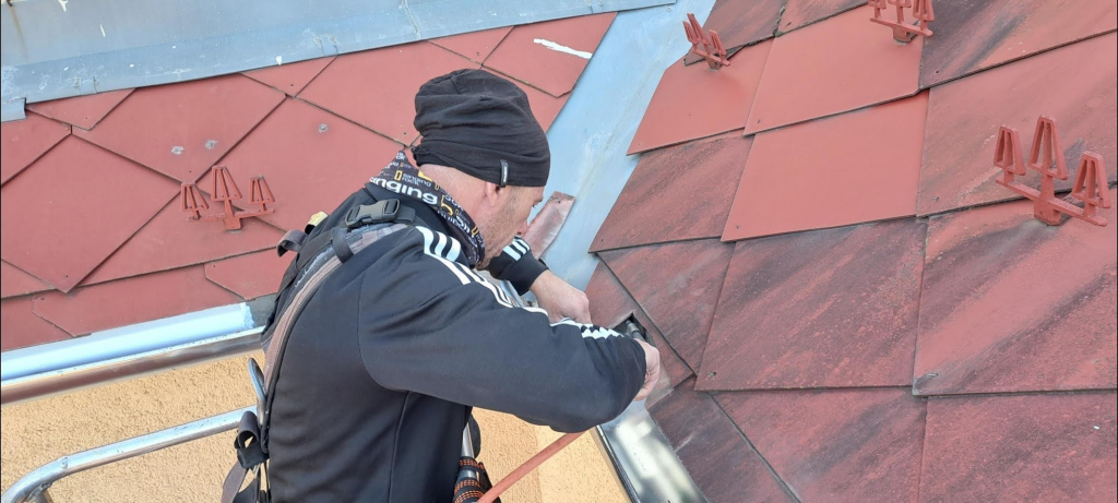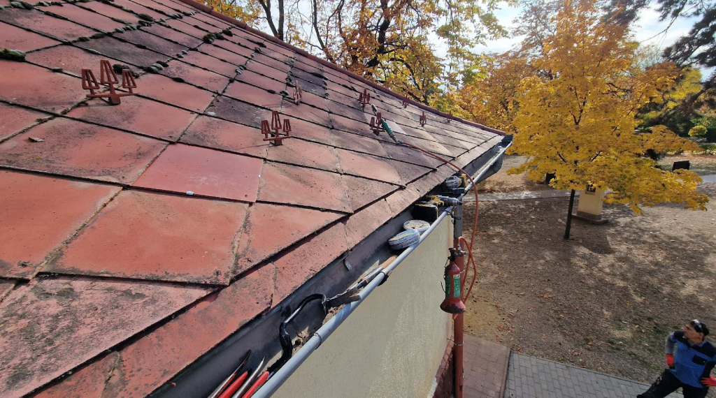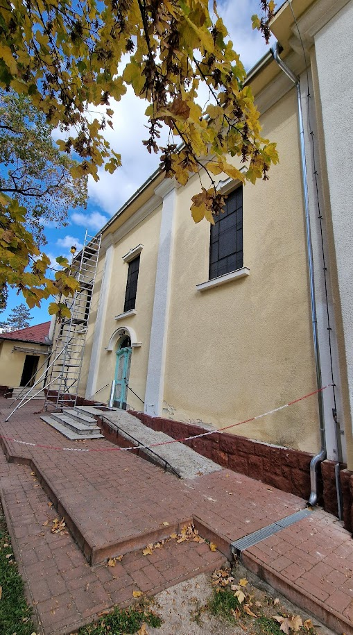 A templomtető hiányzó, törött és sérült paláinak cseréje: A palafedést részletesen átvizsgáltuk, és az épületen található törött és sérült palákat kicseréltük. A munkálatok során mintegy 150 darab pala cseréje történt meg, amelyeket a szakmailag elfogadott módon horganylemez csíkokkal rögzítettünk:
